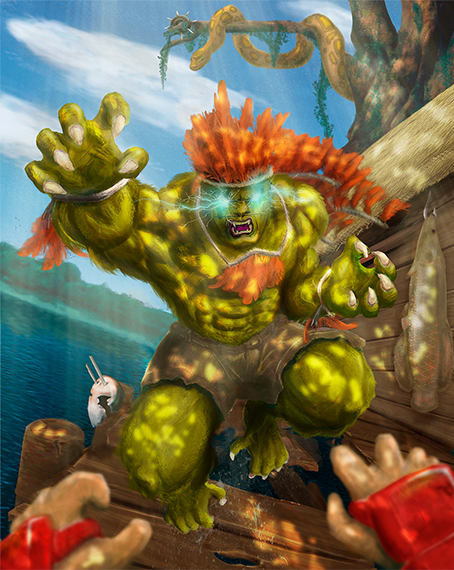 I kept the essence of the original idea, focusing on a more animalistic Blanka with fur and indigenous-inspired elements, and reworked everything using the technique and artistic direction I have developed since then.